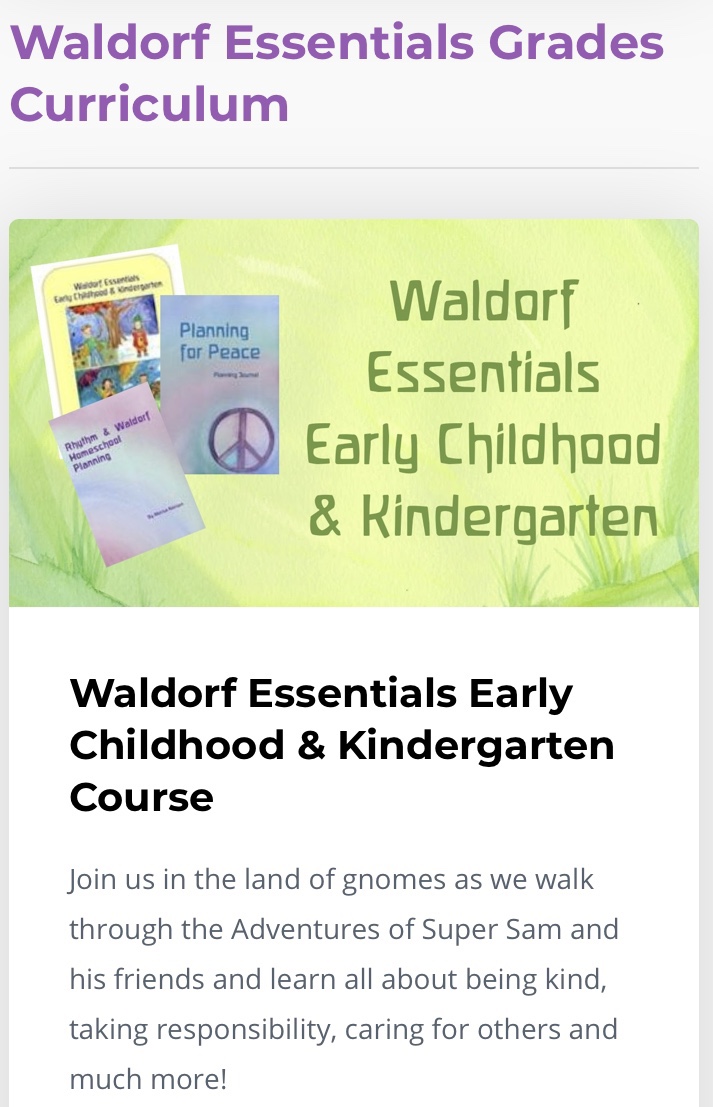I keep running all the homeschooling Waldorf parents getting “homeschool kits” from Waldorf Essentials, I finally checked out their page. Besides curriculum they have all kinds of stuff including podcast links, homeschool training, school planning, something called a “hybrid school” (which I have yet to check out” but I did dabble into some of the free resources😅 Here’s a sneak peak with a little intro about Waldorf first 7 years: